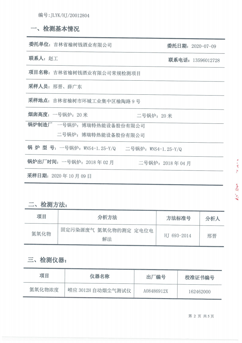 10.9吉林省榆樹錢酒業(yè)·鍋爐煙氣20012804