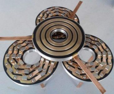 為了處理這一問題,采用了一種把導(dǎo)線斷開,斷開兩頭一端跟隨機(jī)器滾動,一端保持靜止的辦法。聯(lián)接這兩頭斷開導(dǎo)線的產(chǎn)品就叫導(dǎo)電滑環(huán)。導(dǎo)電滑環(huán)的作用便是為了處理機(jī)器在不斷旋轉(zhuǎn)過程中導(dǎo)線纏繞斷線的問題。