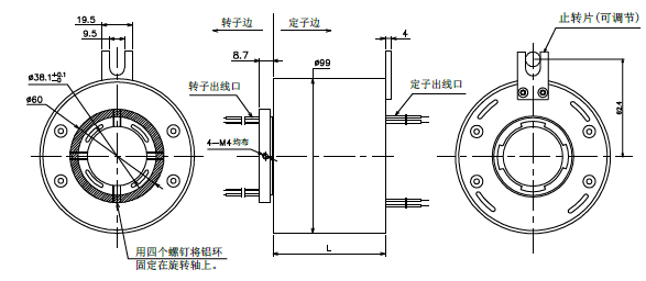 緊定螺絲固定。定子部分通過(guò)止轉(zhuǎn)片與設(shè)備固定部位連接。 |